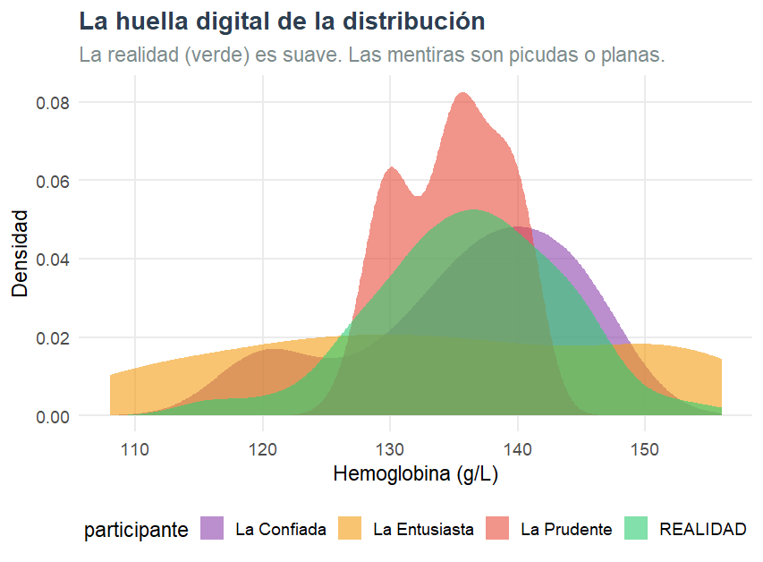 En la pantalla del proyector, el histograma de sus datos mostraba un patrón inusual. Sus valores de hemoglobina —42 números cuidadosamente inventados usando su conocimiento de fisiología— acababan de ser expuestos como falsos.